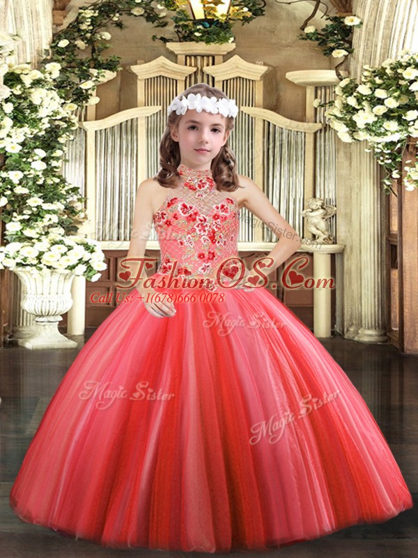 Halter Top Sleeveless Tulle Child Pageant Dress Appliques Lace Up