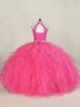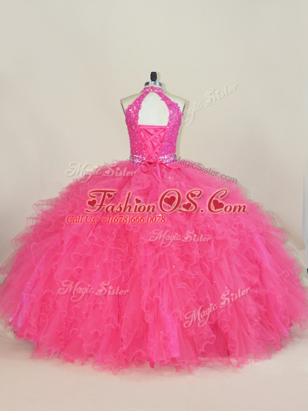 Halter Top Sleeveless Tulle Sweet 16 Dress Beading and Ruffles Lace Up