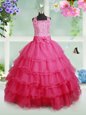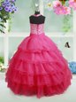 Home >  Special Occasion Dresses >  Little Girl Pageant Dresses > Halter Top Sleeveless Zipper Floor Length Beading and Ruffled Layers and Bowknot Kids Formal Wear