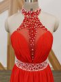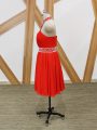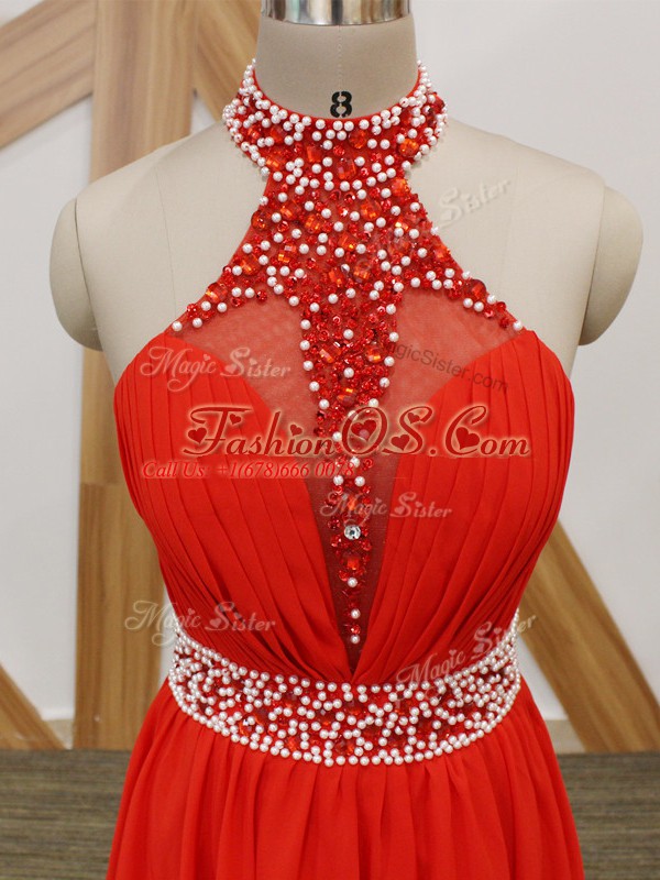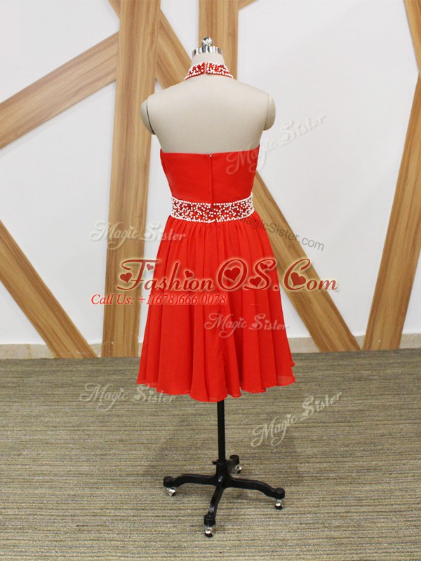 Halter Top Sleeveless Zipper Party Dress Coral Red Chiffon