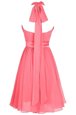 Halter Top Tea Length Backless Homecoming Dresses Watermelon Red and In for Prom and Party with Ruching and Belt