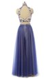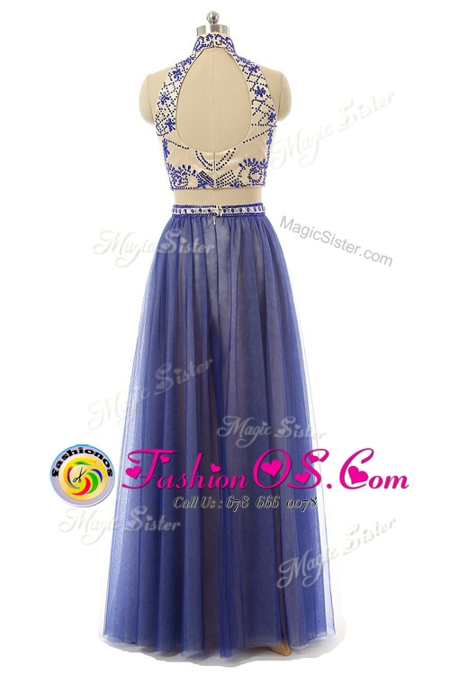 Halter Top Tulle Sleeveless Floor Length Prom Dress and Appliques