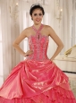 Halter Watermelon Red Pleat 2013 Quinceanera Dress With Beaded Bodice In Tarija City