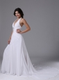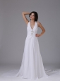 Home >  Wedding Dresses >  Popular Wedding Dresses > Halter Wedding Dress With Ruched Bodice Beading In Brentwood California Chapel Train