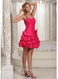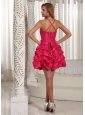 This prom cocktail dress will release your personality in the spotlight! This creation is accented with two spaghetti straps crossed in the open back and modest sweetheart on the fitted bodice. The boning details show off your slim figure. The hand made flower in full blosom bright up the mid-section. The mini-skirt has many tiers of pick-ups that create A chic and sexy silhouette. The back features a corset-style closure that ensures a perfect fit.