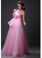 Home >  Prom Dresses >  Beautiful Prom Dresses > Hand Made Flower Decorate Bust Tulle Baby Pink Beading Floor-length Prom / Evening Dress For 2013