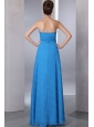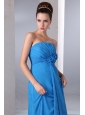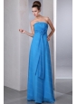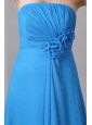 Hand Made Flower Floor-length Chiffon Empire Blue Dama Dress