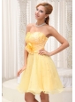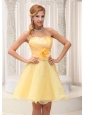 Hand Made Flower On Up Bodice Light Yellow Sweet Prom / Cocktail Dress For 2012 Beaded Decorate Bust