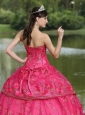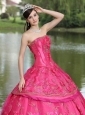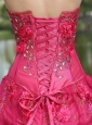 The strapless beaded floor length taffeta quinceanera dress is your perfect choice to attend ball, wedding and party.Fitting bodice design with beaded decoration and embellished appliques makes the gown so beautiful and sexy that you can gain more attention and no matter what you attend,you will become the spotlight.Besides, the chic flowers both in the front and back section makes the bouffant skirt to creat a beautiful shape.A lace up back completes this exquisites dress.