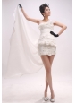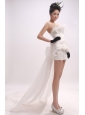 This strapless dress will bring you enough confidence and show your infinite charm. Wearing this prom dress, your sexy figure, your attractive charm, even your inside temperament will be reflected vividly and incisively. The bust area is decorated by delicate beaded flower. The amazing mini skirt is reminiscent of the old fashioned skirts and is adorned by ruchings on the whole bodice. What's more the detachable train on the back will make you more charming.