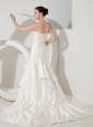 Hand Made Flowers and Ruch Decorate Bodice Mermaid Ruffled Layers Court Train Taffeta 2013 Wedding Dress