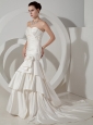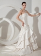 Home >  Wedding Dresses >  Elegant Wedding Dresses > Hand Made Flowers and Ruch Decorate Bodice Mermaid Ruffled Layers Court Train Taffeta 2013 Wedding Dress