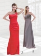 Hand Made Flowers and Ruching One Shoulder Prom Dresses