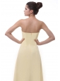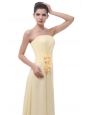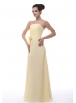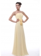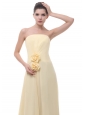 Hand Made Flowers Decorate Bodice Light Yellow Chiffon Floor-length Strapless Bridesmaid Dress For 2013