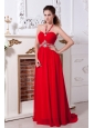 Home >  Prom Dresses >  Beautiful Prom Dresses > Hand Made Flowers Decorate Bodice Red Chiffon Knee-length 2013 Prom Dress