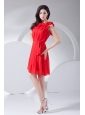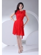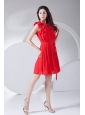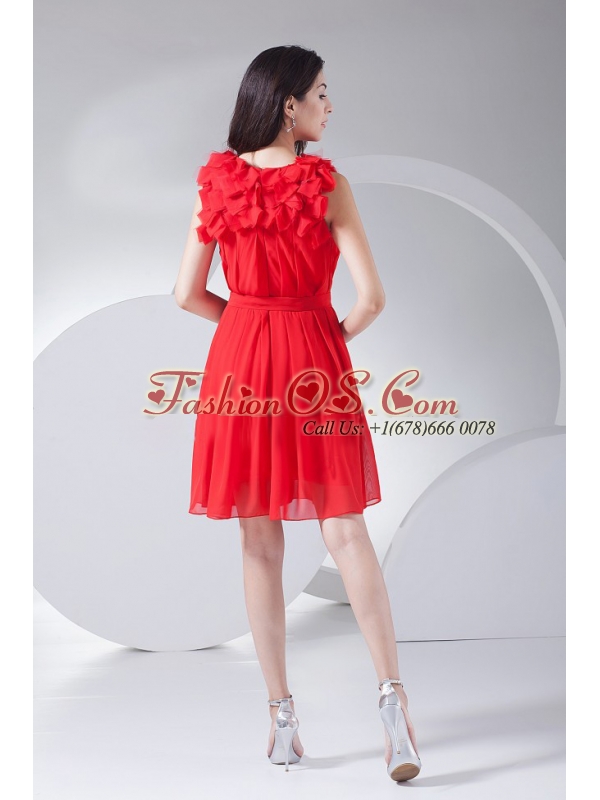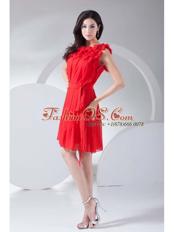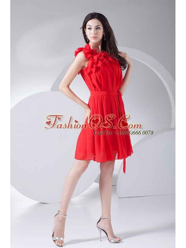Hand Made Flowers Decorate Bodice Red Chiffon Knee-length 2013 Prom Dress