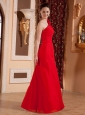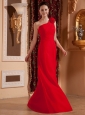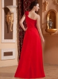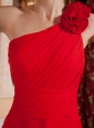 Hand Made Flowers Decorate One Shoulder and Ruched Bodice For Prom Dress