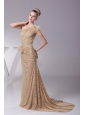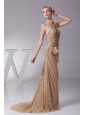 Hand Made Flowers Decorate One Shoulder Lace Brush Train 2013 Prom Dress