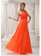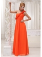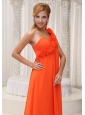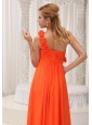 Home >  Bridesmaid Dresses >  Elegant Bridesmaid Dresses > Hand Made Flowers Decorate One Shoulder Orange Chiffon Empire Floor-length For Bridesamid Dress