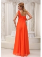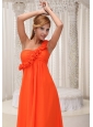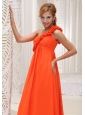 Hand Made Flowers Decorate One Shoulder Orange Chiffon Empire Floor-length For Bridesamid Dress