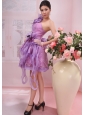 Home >  Special Occasion Dresses >  Homecoming Dresses > Hand Made Flowers One Shoulder Lace and Organza Lavender Knee-length Prom Dress