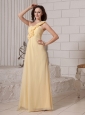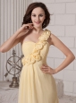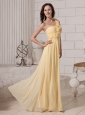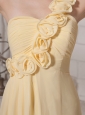 Hand Made Flowers One Shoulder Light Yellow Chiffon Custom Made 2013 Prom Gowns