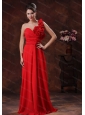 Are you still looking for a festival gown? Look no further cause this red one shoulder prom gown will meet all you requests. The strap is totally made of flowers. The sweetheart bodice features exquisite ruched textures. The floor length skirt fall elegantly to the ground with clean lines. A hidden zipper in the back finishes the wonderful look. Take it home now!