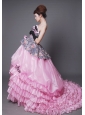 Hand Made Flowers Printing and Organza Ruffled Layers Court Train Exclusive Style For 2013 Quinceanera dress