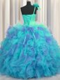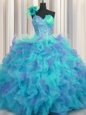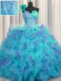 Home >  Quinceanera Dresses >  Fashionable Quinceanera Dresses > Handcrafted Flower Floor Length Multi-color Quinceanera Gown One Shoulder Sleeveless Lace Up