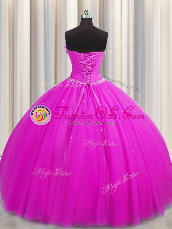 Home >  Quinceanera Dresses >  In Stock Quinceanera Dresses > Handcrafted Flower Fuchsia Sweet 16 Dress Military Ball and Sweet 16 and Quinceanera and For with Beading and Sequins and Hand Made Flower Strapless Sleeveless Lace Up