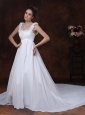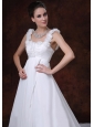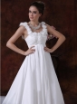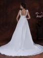 Handle-Made A-Line Straps Chapel Train Chiffon 2013 Beach Wedding Dress