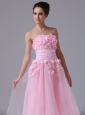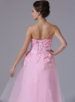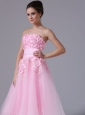 Fantastic and gorgeous are the words that can describe this fashionable dress. The well-fitting bodice is heavily decorated with beautiful handle flowers and exquisite embroidery appliques, which also flow to the skirt and back to decorate this fairy-like perfect dress. The waist is curved by a waistband with ruching decorates the middle section.The hidden zipper on the back allows easy off and on. The pink tulles on the puffy skirt add a sense of fantasy and fairy-like to this romantic dress. Come on! Bring this beautiful dress home and you will never regret!
