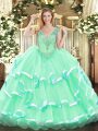 High Class Apple Green V-neck Neckline Beading Quinceanera Gowns Sleeveless Lace Up