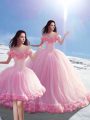 Home >  Quinceanera Dresses >  Detachable Quinceanera Skirts > High Class Baby Pink Lace Up Off The Shoulder Hand Made Flower Sweet 16 Dress Tulle Sleeveless Brush Train