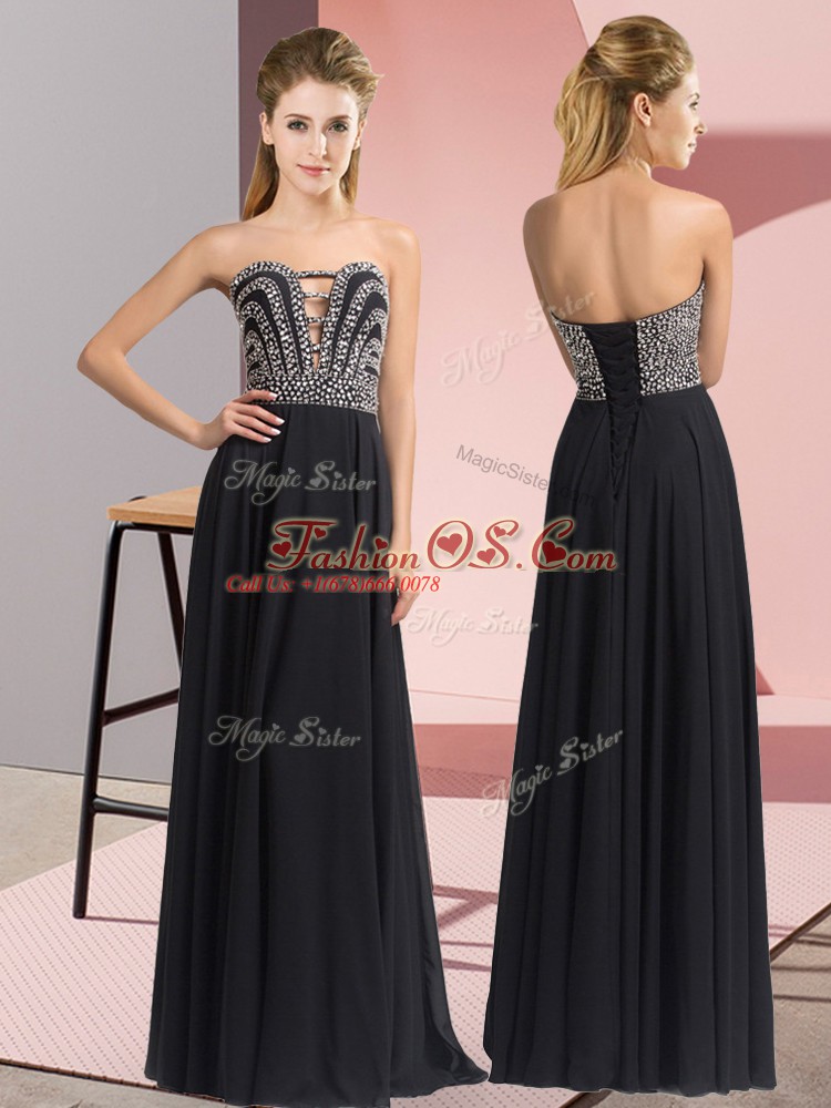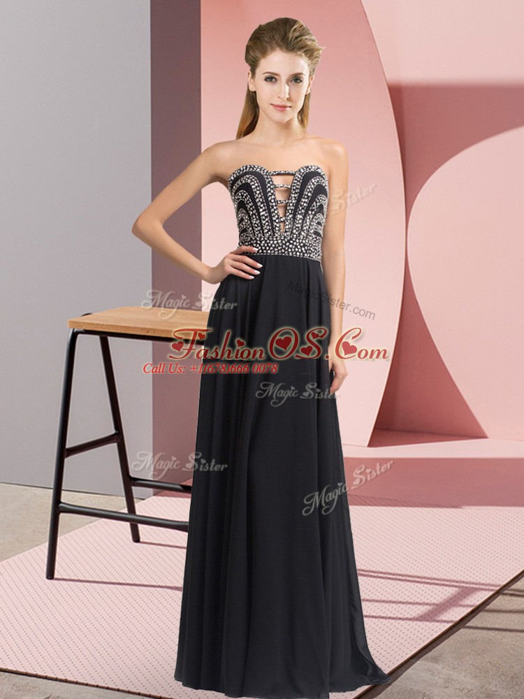 High Class Black Sleeveless Beading Floor Length Junior Homecoming Dress