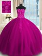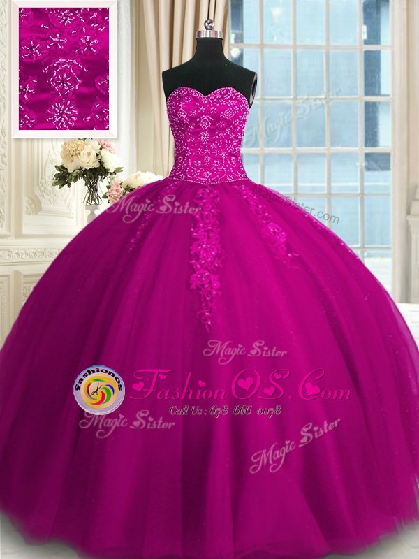 Home >  Quinceanera Dresses >  In Stock Quinceanera Dresses > High Class Floor Length Fuchsia 15th Birthday Dress Tulle Sleeveless Appliques and Embroidery