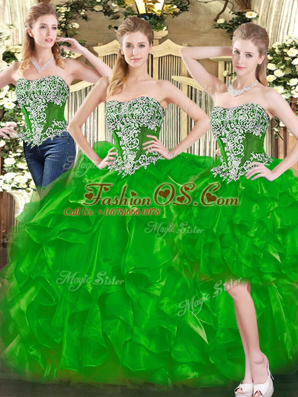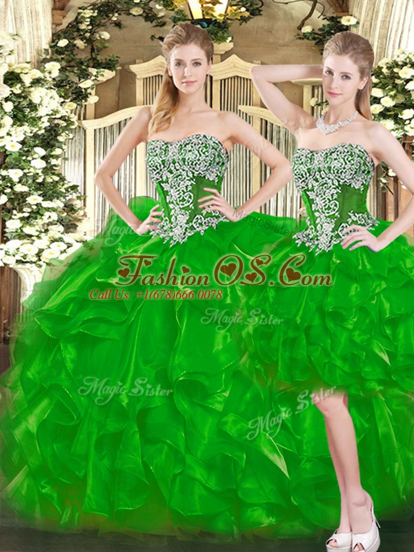 High Class Floor Length Green Quinceanera Gown Organza Sleeveless Beading and Ruffles
