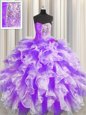 Home >  Quinceanera Dresses >  Popular Quinceanera Dresses > High Class Floor Length White And Purple Vestidos de Quinceanera Sweetheart Sleeveless Lace Up