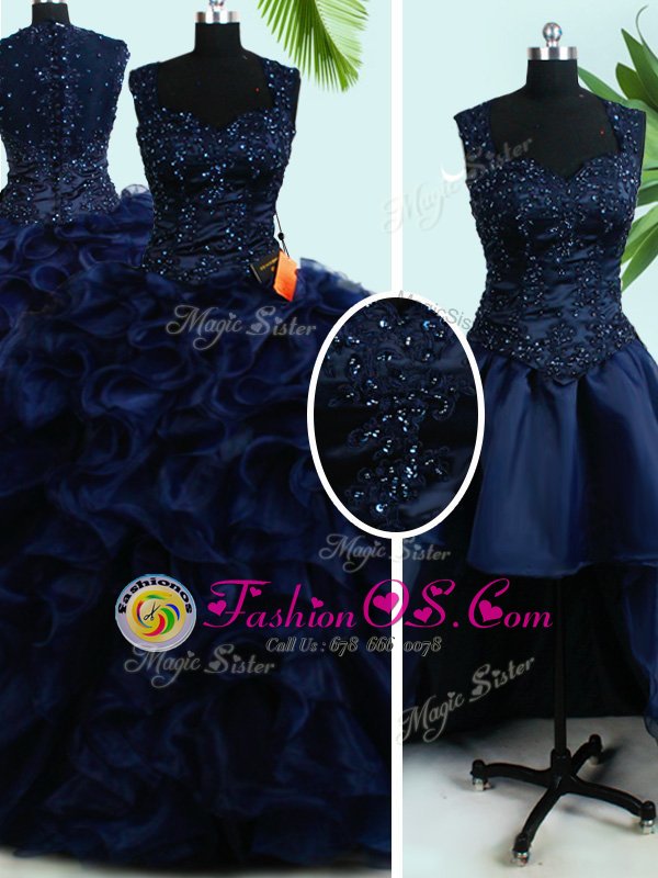 Home >  Quinceanera Dresses >  Detachable Quinceanera Skirts > High Class Four Piece Floor Length Navy Blue Quinceanera Dress Straps Sleeveless Zipper