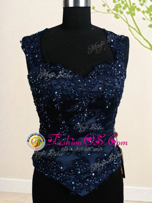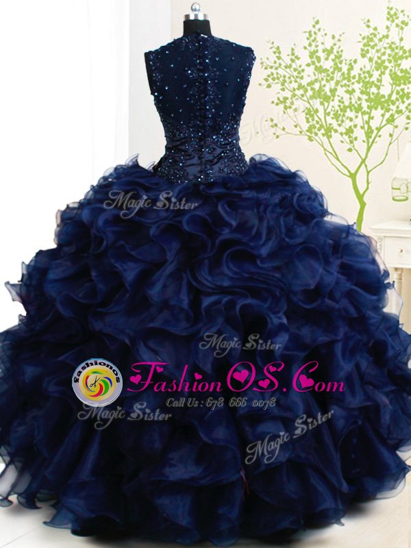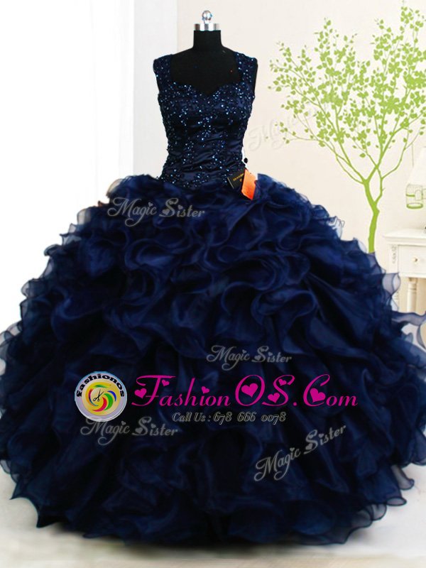 High Class Four Piece Floor Length Navy Blue Quinceanera Dress Straps Sleeveless Zipper