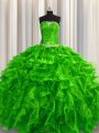High Class Green Sleeveless Organza Lace Up Quinceanera Gown for Military Ball and Sweet 16 and Quinceanera