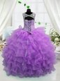 Home >  Special Occasion Dresses >  Little Girl Pageant Dresses > High Class Lavender Ball Gowns Scoop Sleeveless Organza Floor Length Lace Up Beading and Ruffled Layers Child Pageant Dress