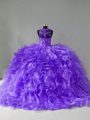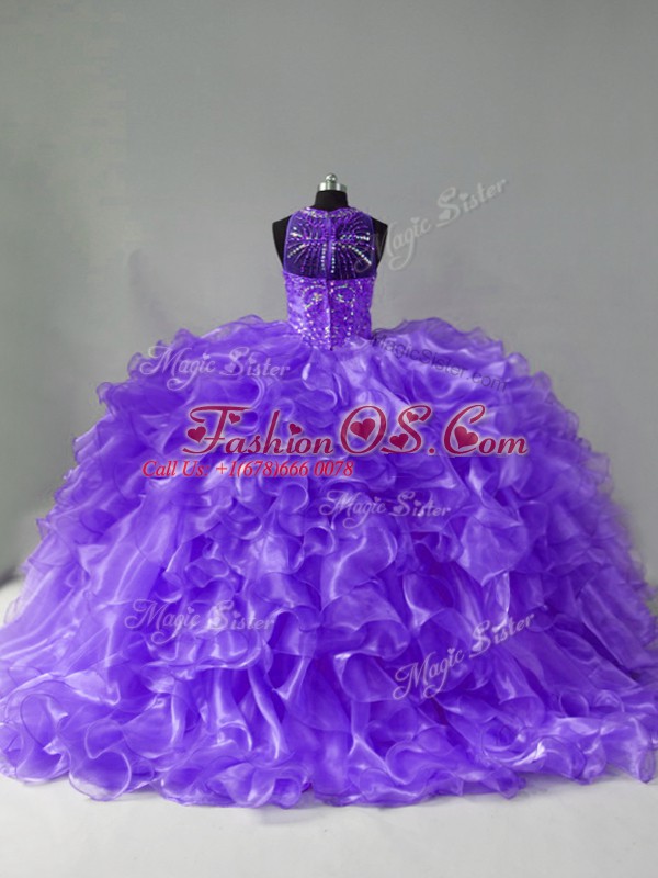 High Class Lavender Sleeveless Beading and Ruffles Zipper Sweet 16 Dress