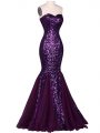 High Class Mermaid Evening Gowns Purple Sweetheart Chiffon and Tulle Sleeveless Floor Length Lace Up