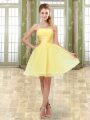 High Class Mini Length Yellow Prom Dresses Organza Sleeveless Beading and Ruching