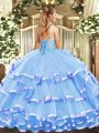 Home >  Quinceanera Dresses >  Fast Delivery Quinceanera Dresses > High Class Organza Sleeveless Floor Length 15 Quinceanera Dress and Beading and Ruffled Layers