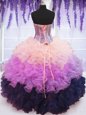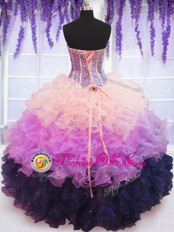 High Class Organza Sweetheart Sleeveless Lace Up Beading and Ruffles and Ruffled Layers Quinceanera Gown in Multi-color