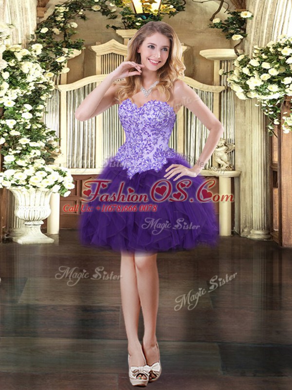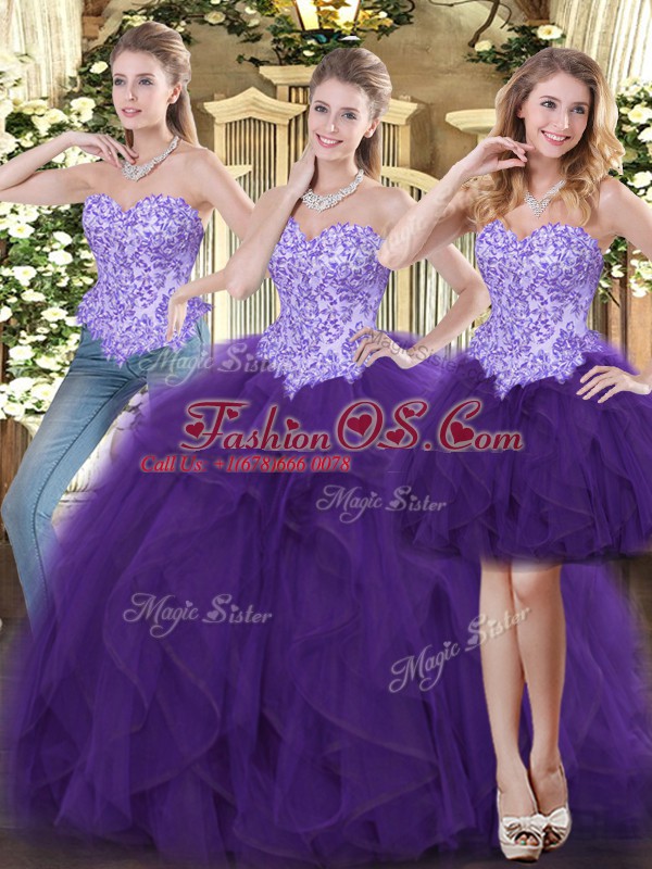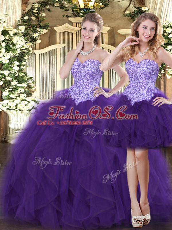 Home >  Quinceanera Dresses >  Detachable Quinceanera Skirts > High Class Purple Lace Up Quinceanera Dresses Beading and Ruffles Sleeveless Floor Length