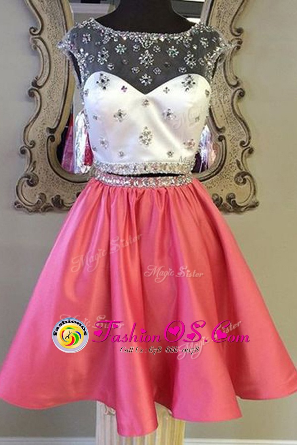High Class Rose Pink Dress for Prom Prom and Party and For with Sashes|ribbons Bateau Cap Sleeves Zipper