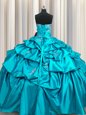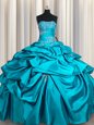 High Class Royal Blue Ball Gowns Strapless Sleeveless Organza Sweep Train Lace Up Beading and Ruffles 15th Birthday Dress